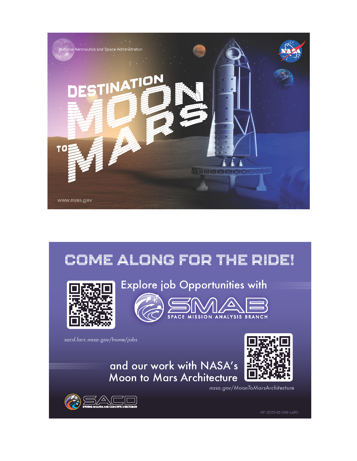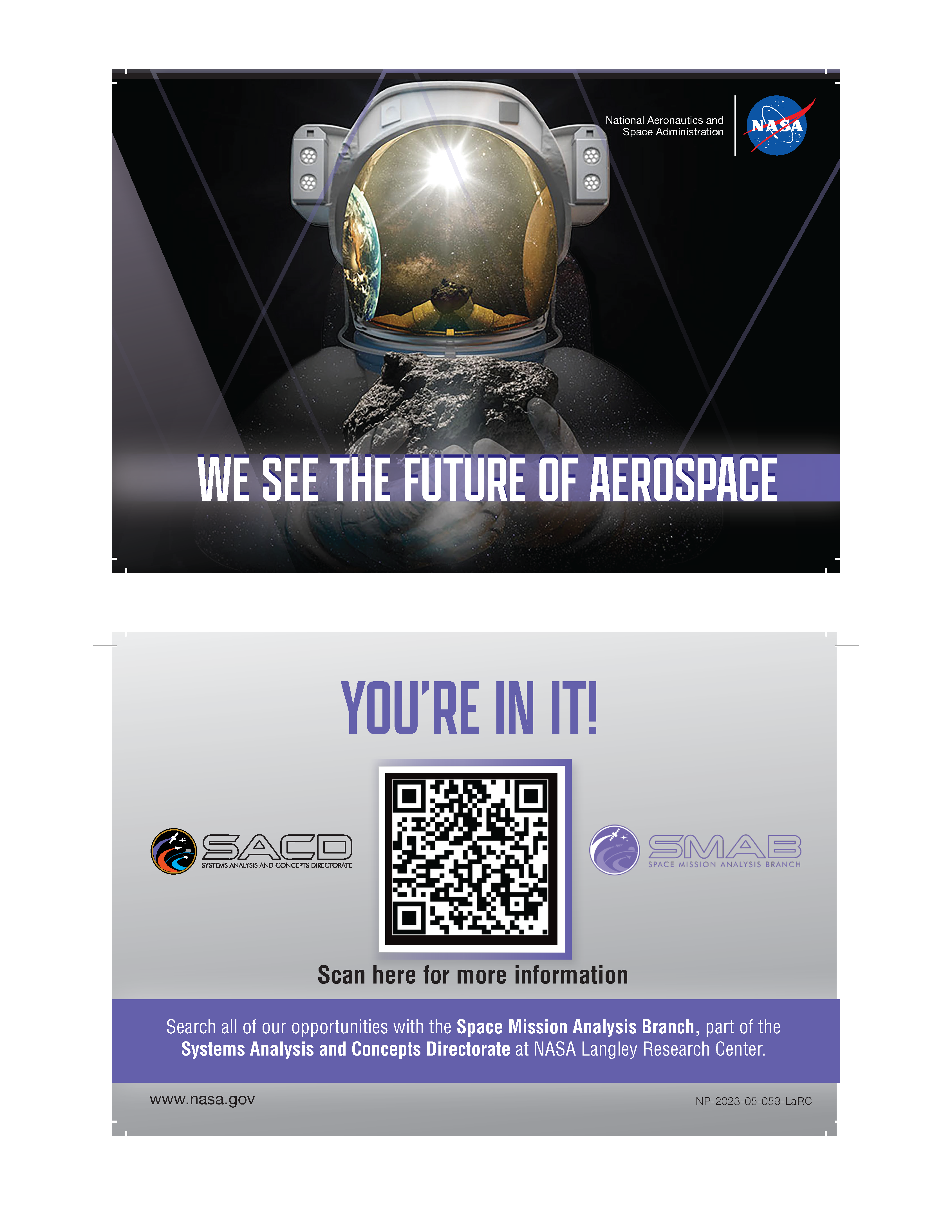 Strategic design and branding materials for NASA programs, including recruitment campaigns, technical program promotion, and visual storytelling that translates complex aerospace concepts for diverse audiences.